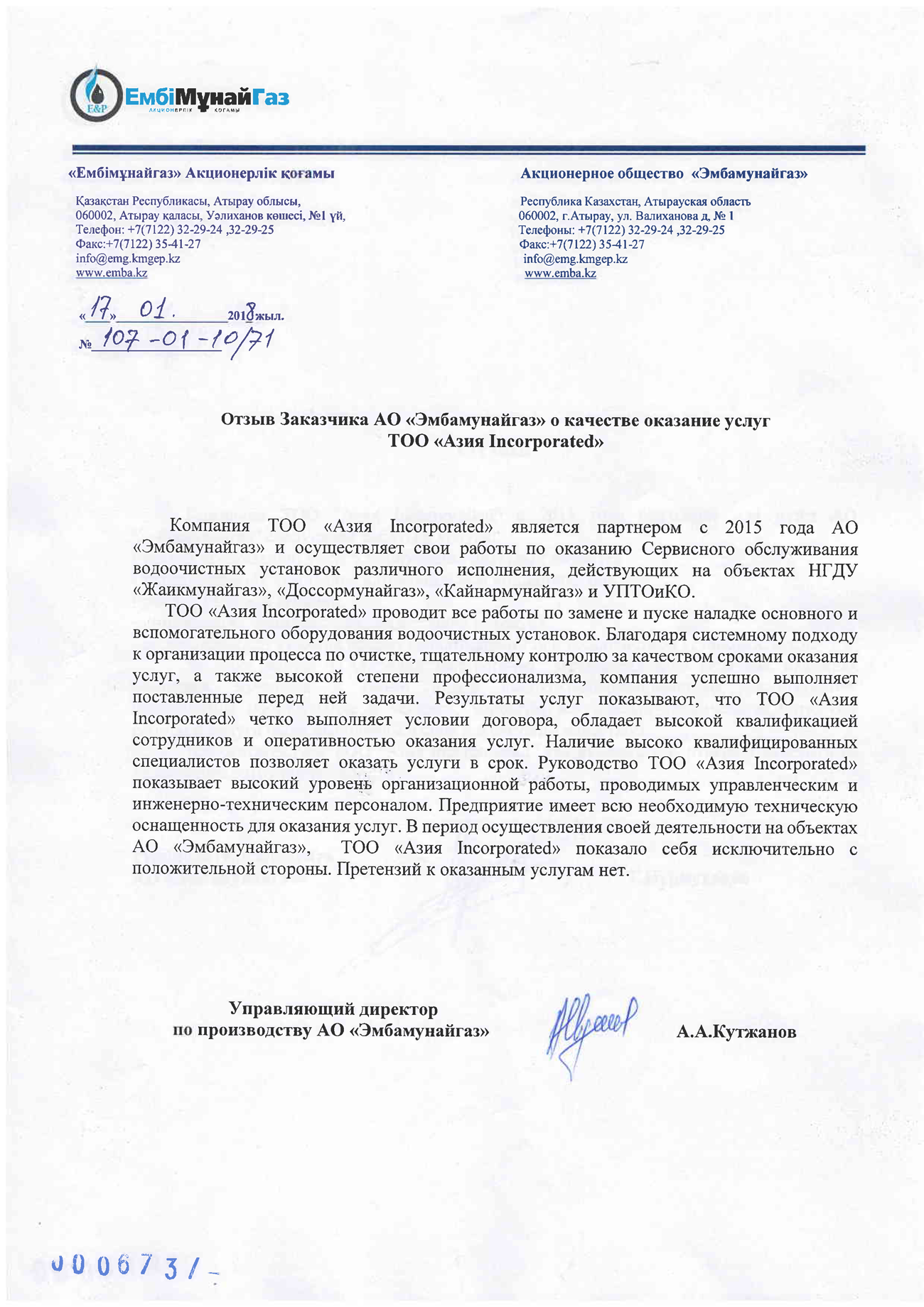 ТОО «АЗИЯ Incorporated» включен в Перечень предварительно квалифицированных потенциальных поставщиков АО ФНБ «Самрук-Қазына». Наши специалисты, это основное конкурентное преимущество нашей компании, поскольку коллектив ТОО «АЗИЯ Incorporated» - это профессиональная, мобильная и сплоченная команда высококвалифицированных специалистов, состоящая из более чем тридцати успешных, неоднократно доказавших свою квалификацию, ответственных профессионалов.
